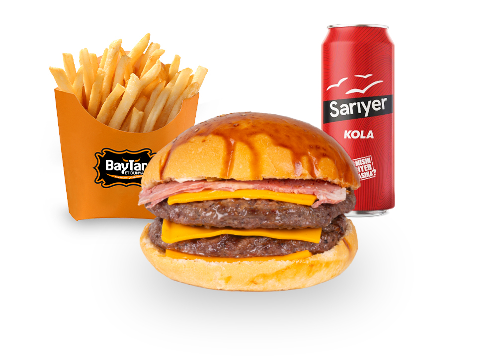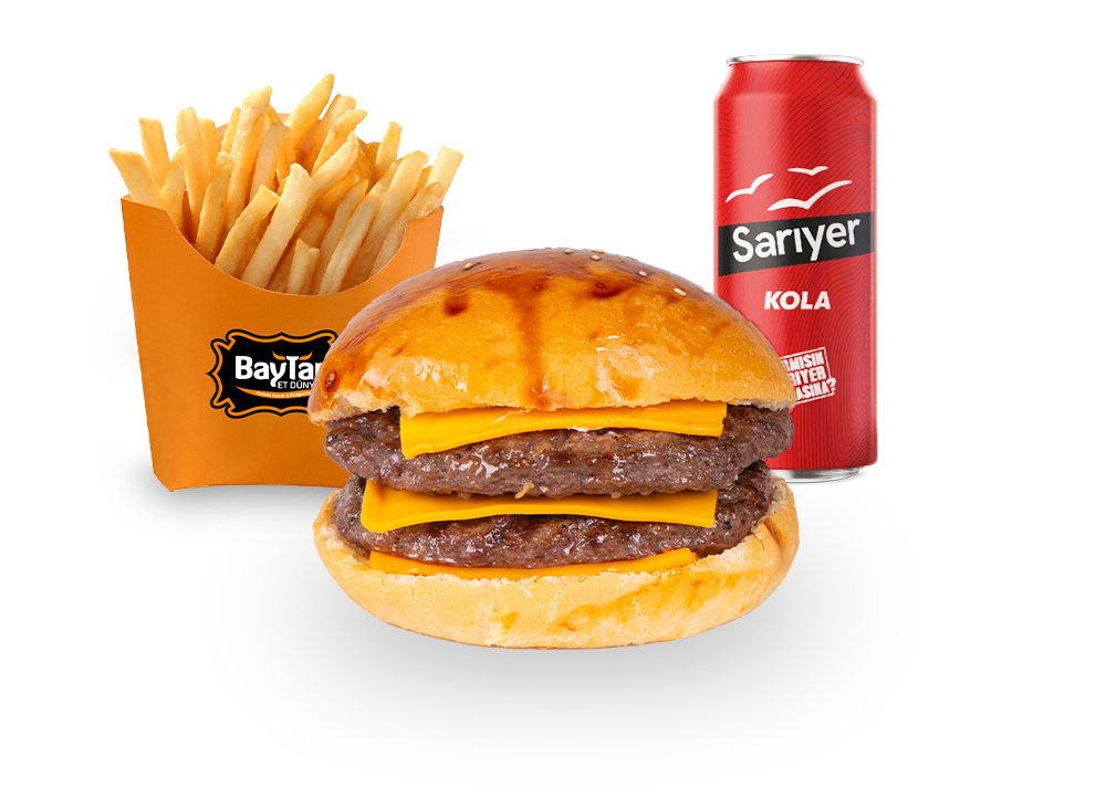 DUBLEX SPECİAL BURGER(CHEDAR,FÜME ET,KARAMELİZE SOĞAN) PATATES KIZARTMASI İÇECEK (KÖFTEMİZ 120 GRAM)