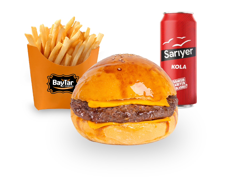CHEESE BURGER(CHEDAR,KARAMELİZE SOĞAN) PATATES KIZARTMASI İÇECEK (KÖFTEMİZ 110 GRAM)